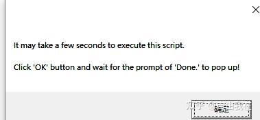 双击脚本后,出现提示框,点击“确定”按钮。等待一会后,安装成功后,会弹出提示框“Done”。