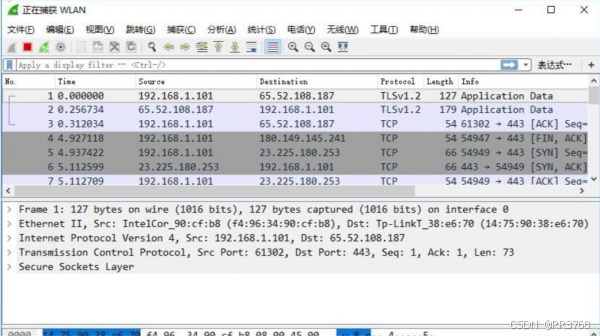 它的强大特性:例如包含有强显示过滤器语言和查看TCP会话重构流的能力,支持几百种协议和流媒体类型。