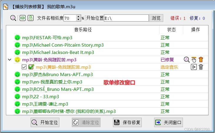 匹配定位出错的音乐;
