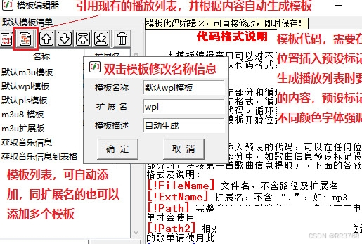 为不同格式的播放列格式预设内容模板,支持修改模板或添加模板样式。