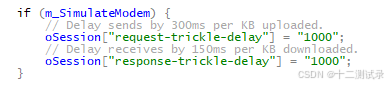 oSession["request-trickle-delay"] = "300"; 含义:上传 1KB 需要 300 毫秒(默认配置)