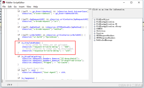 oSession["response-trickle-delay"] = "150"; 含义:下载 1KB 需要 150 毫秒(默认配置)