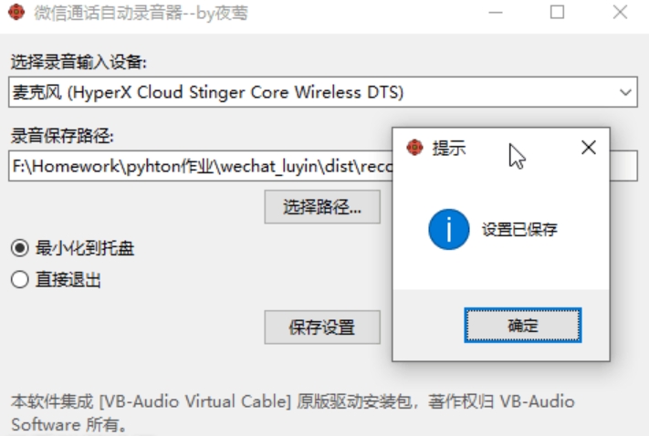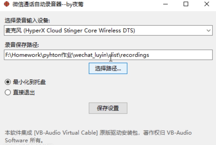 [Windows] 微信通话自动录音器 goodfat 2025-06-14 21:33:04 微信通话录音 微信通话自动录音器是一款支持 Windows 平台的桌面小工具,主要功能是: 自动检测微信的通话窗口(支持语音/视频通话) 一旦检测到通话,自动开始录音,通话结束自动保存 mp3 文件 支持选择麦克风或虚拟声卡(推荐安装 VB-Audio Virtual Cable,可完整捕获“你和对方”的声音) 支持自定义录音保存路径 本文是转载文章,点击查看原文 如有侵权,请联系 lx@jishuguiji.net 删除。