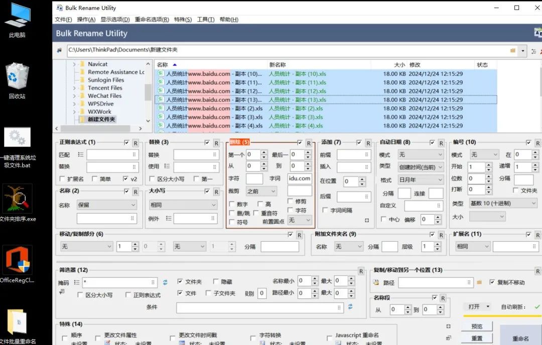 Bulk Rename Utility 是一款专为 Windows 系统设计的强大且免费的文件批量重命名工具。它具备以下实用功能:
