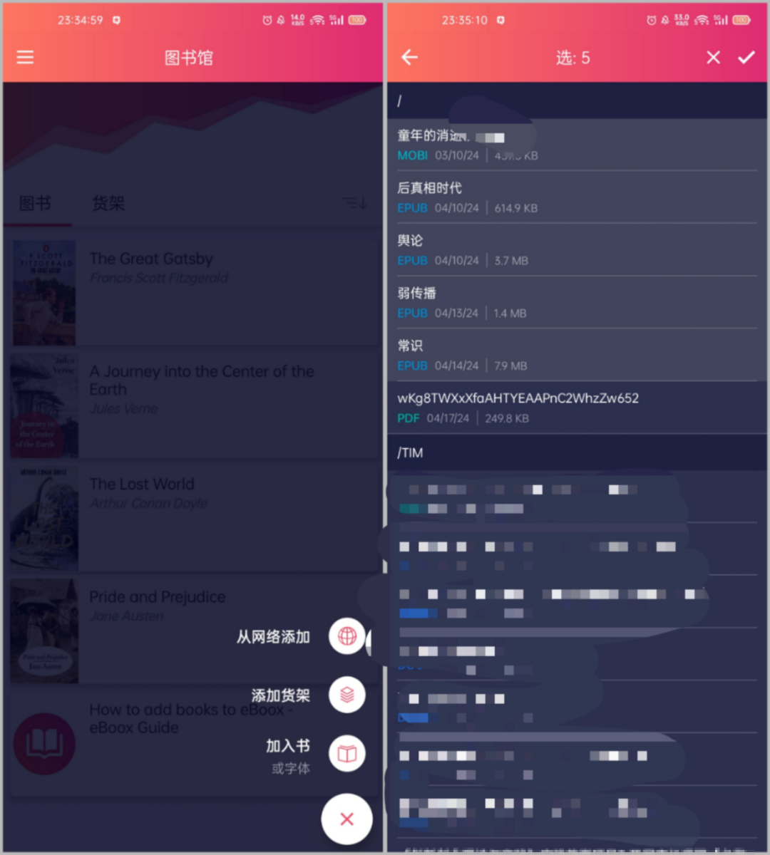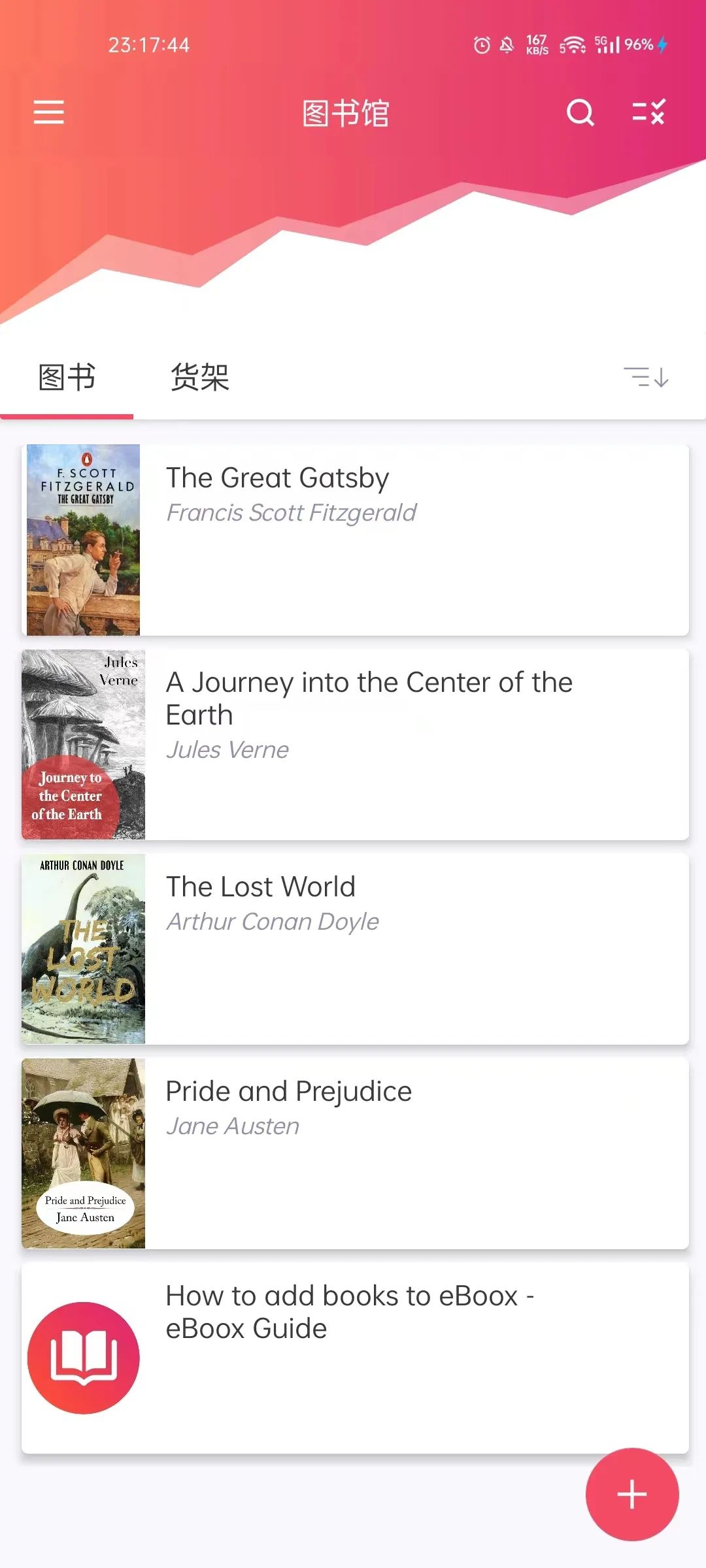点击右下角的“+”,即可从本地导入书籍文件