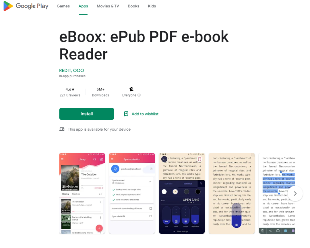 eboox是一款在Google Play上发布的本地电子书阅读应用,支持导入epub、mobi、pdf等多种电子书格式,满足您的多样化阅读需求!