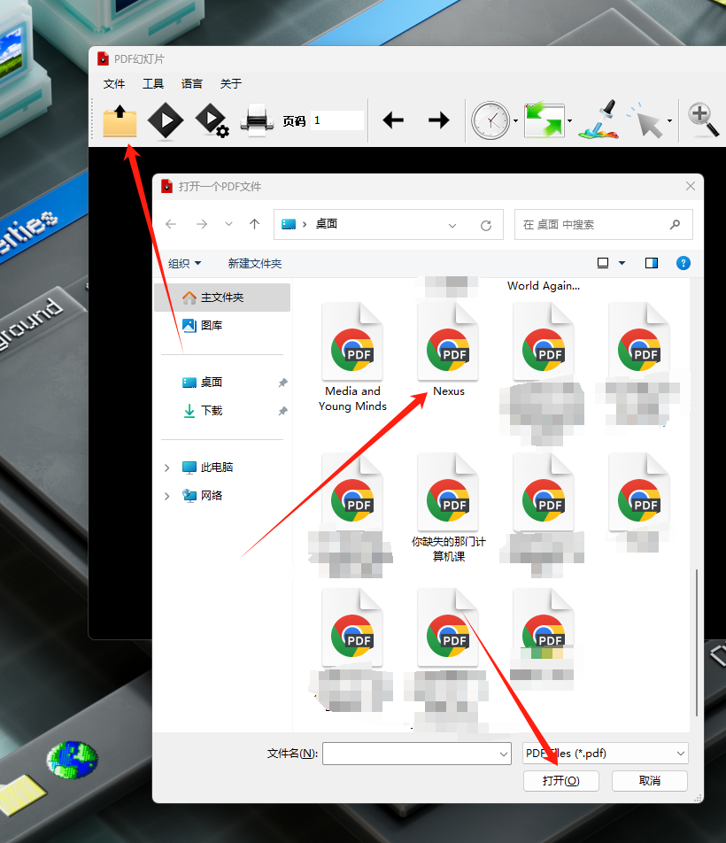虽然都2024年了,但是PDFSlideshow并不支持拖入打开,需要点击软件左上角的打开按钮,选择需要打开的PDF文件