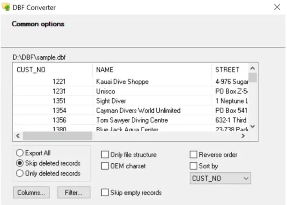 DBF Converter为您的所有 DBF 格式转换需求提供全面的解决方案。无论您需要将 DBF 文件中的数据提取为 CSV、XLS、XLSX、SQL 还是纯文本,该软件都提供了一种简单有效的方法,可以轻松实现您的目标。