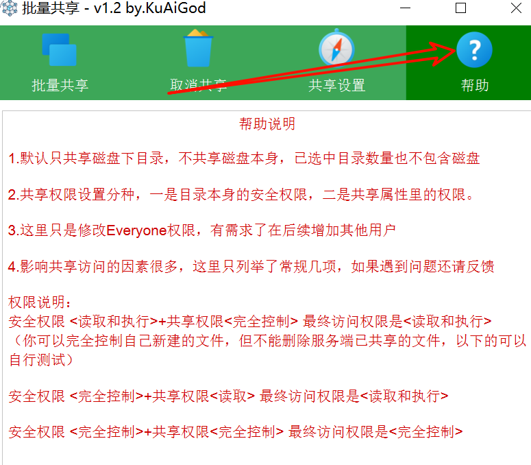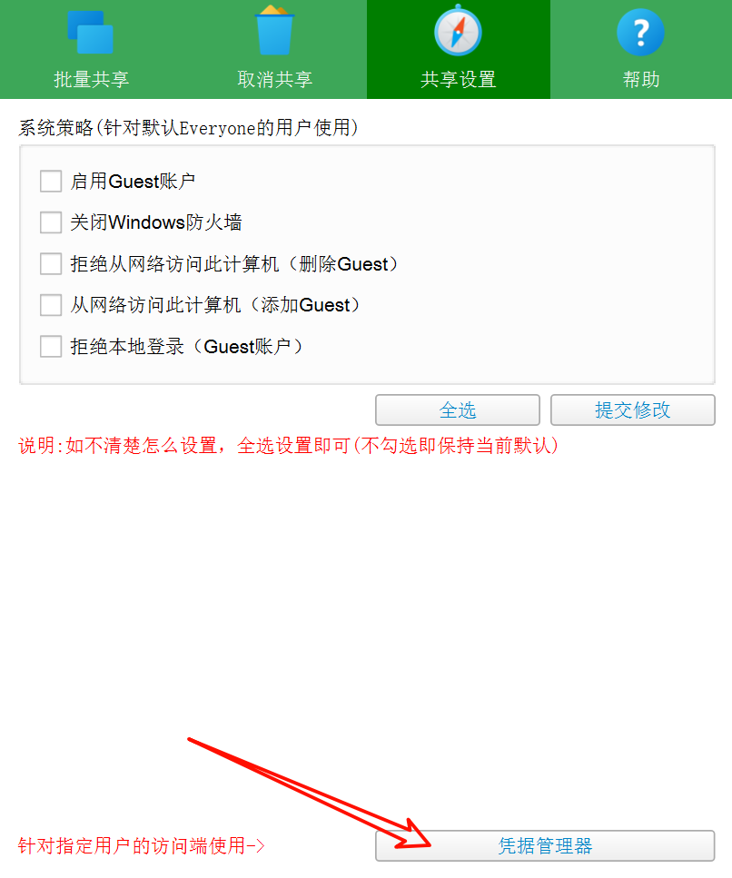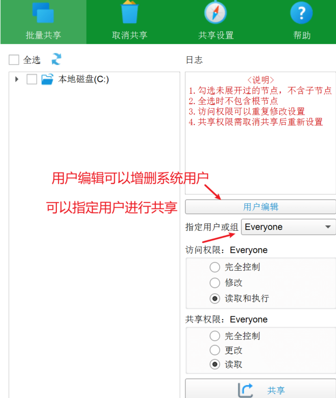 针对不熟悉共享设置的用户,软件提供了全选设置功能,自动为用户配置默认权限,简化了设置流程。此外,软件还配备了详细的帮助文档,为用户提供全面的操作指导,助力用户快速上手。
