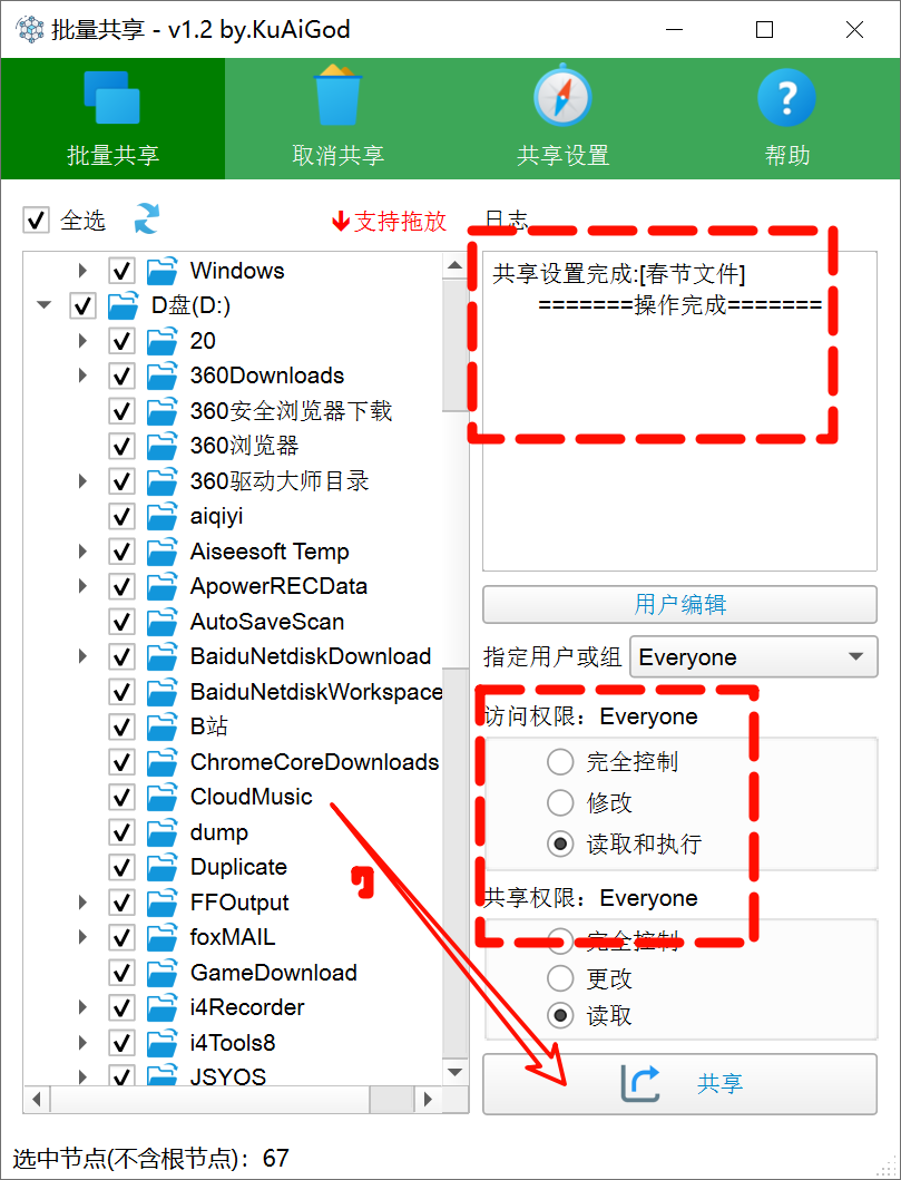 该软件的核心功能之一是一键批量共享文件夹。用户只需简单勾选需要共享的文件夹,即可一键完成批量共享设置,极大地提高了工作效率,减少了繁琐的重复操作。