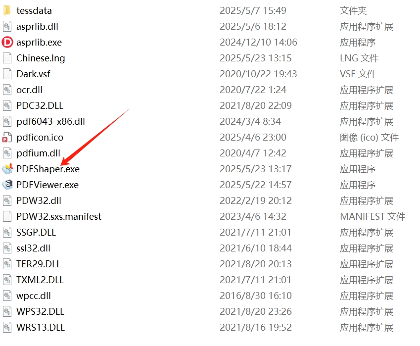 2.打开刚刚解压的文件夹,鼠标右键点击“PDFShaper.exe“选择“以管理员身份运行