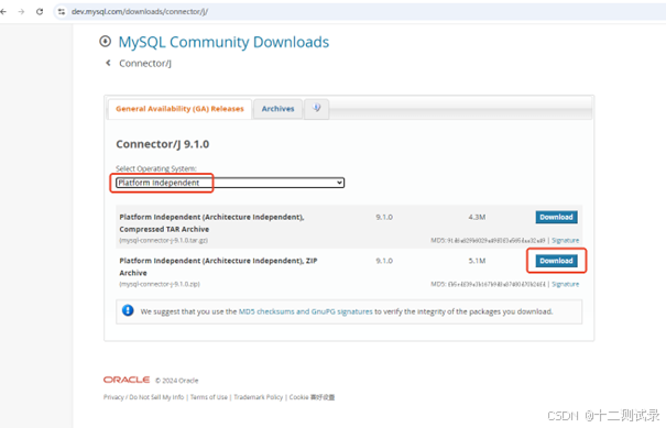 安装地址:https://dev.mysql.com/downloads/connector/j/