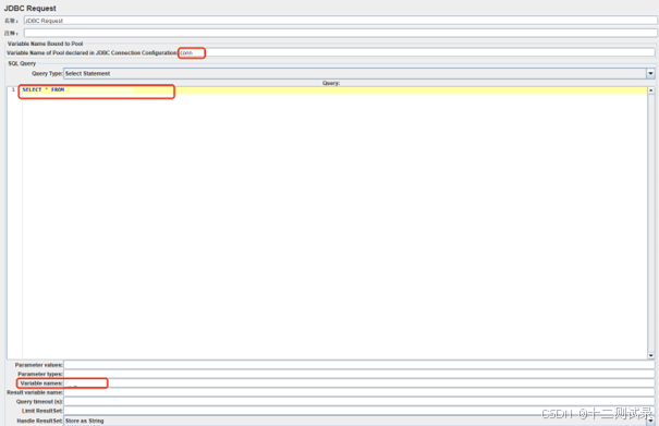 JDBC Request配置如下: