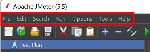 • 菜单栏:主要功能包括新建测计划,添加线程组、测试脚本,分布式运行相关,查看日志,生成报告和函数助手。
