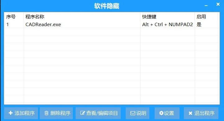 如按键后总是显示无,说明此组合键已被占用。程序是通过检测程序exe名来进行隐藏的。