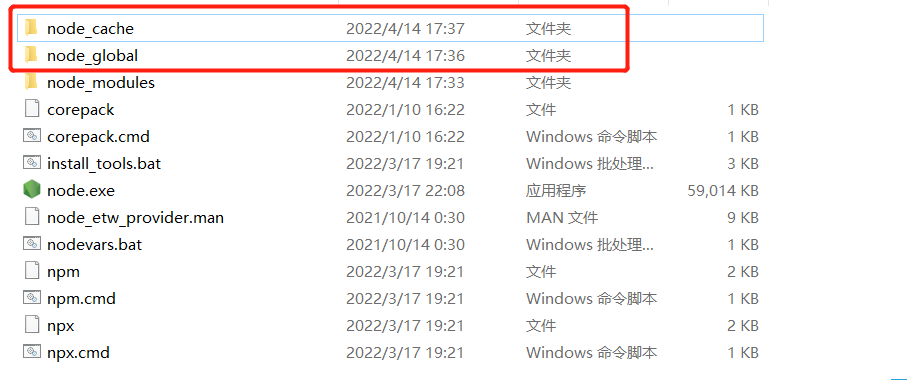 ,时间长了肯定会占用C盘的资源,所以需要我们在node.js的安装目录下创建两个文件夹:node_global和node_cache