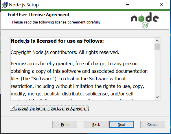 安装的路径默认是C:\Program Files\nodejs\