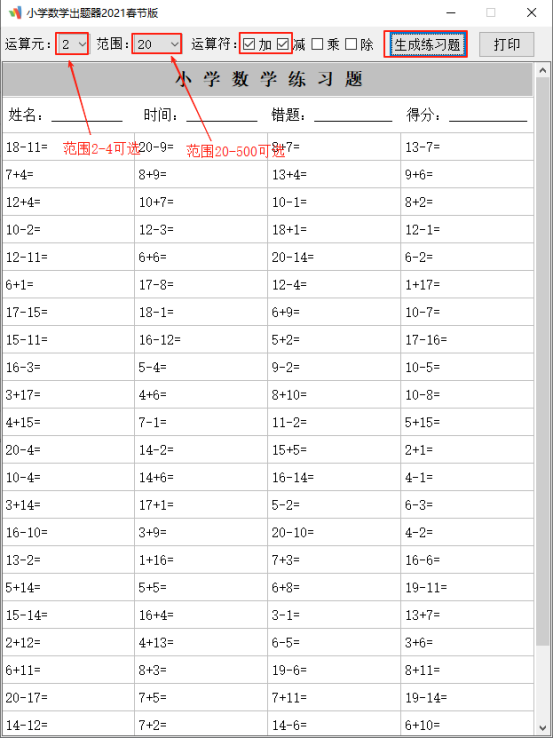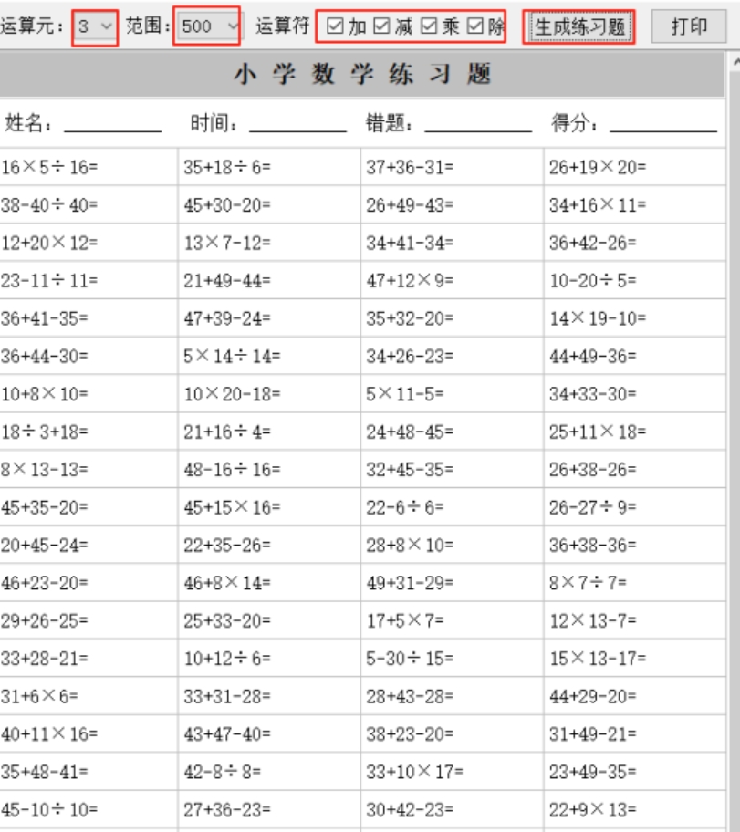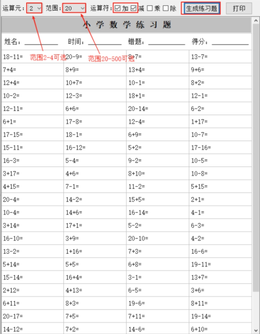 • 参数设置‌:根据教学需求,设定运算元数量及数值范围。例如,为一年级学生设置加法题目时,可限制数值不超过100。