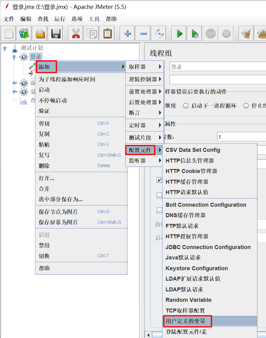 (2)第二种方式:添加 -->配置元件 --> 用户定义的变量