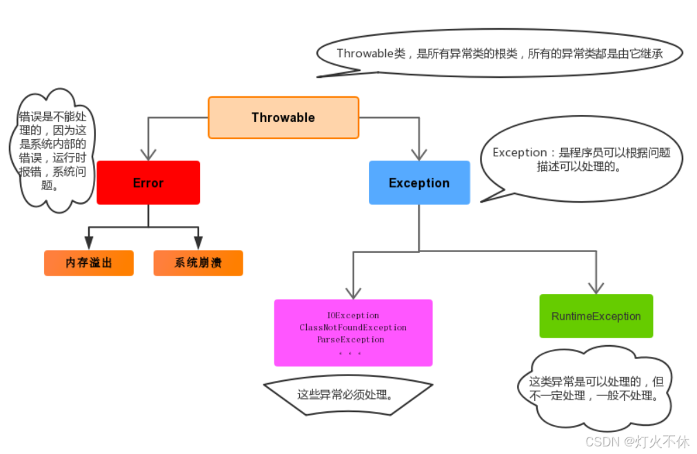• Error:严重错误Error,无法通过处理的错误,只能事先避免,好比绝症。
