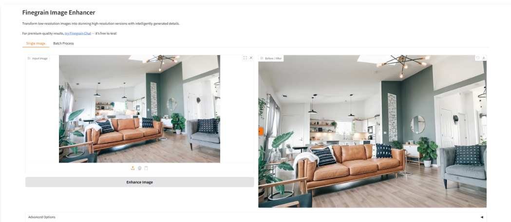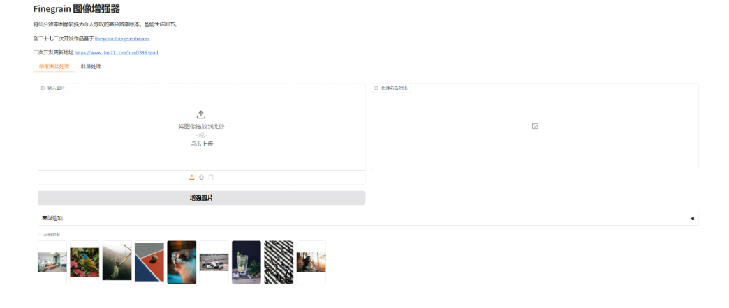 Finegrain Image Enhancer 结合先进AI技术与开源协作模式,为开发者和创作者提供高效、可定制的图像增强解决方案,适用于从个人项目到商业应用的多样化场景 。