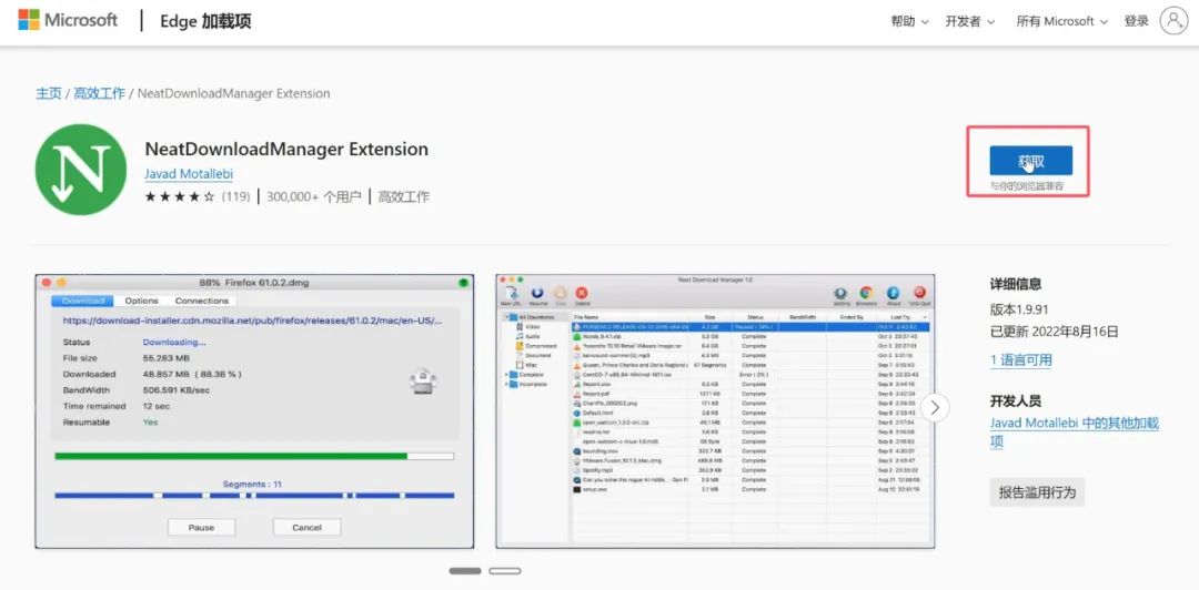 点击获取,添加扩展,就可以快速地安装到edge浏览器当中了。