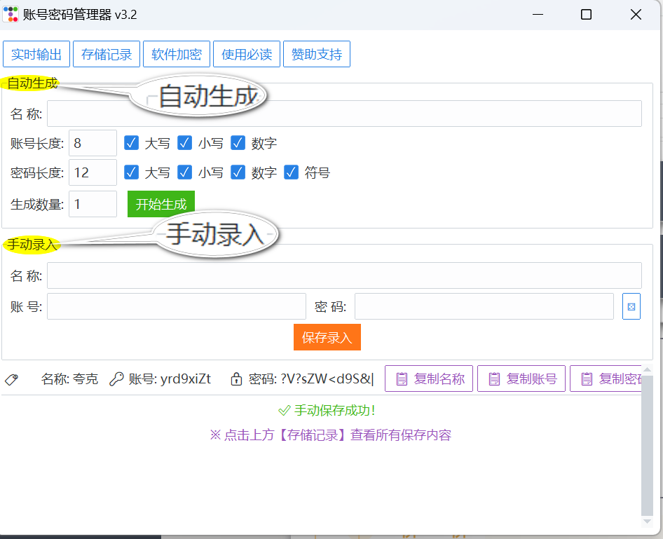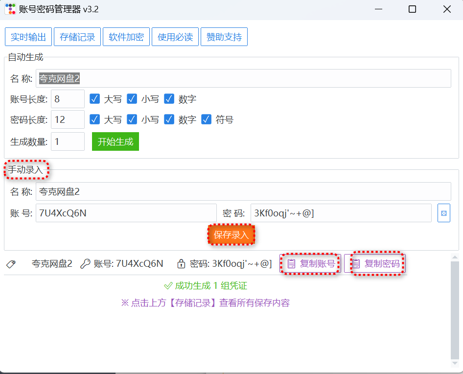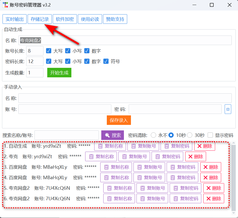 除了基础密码存储功能,最惊艳的是它的「智能生成系统」——自由设定账号/密码长度和生成数量,一键创建高强度密码组合!