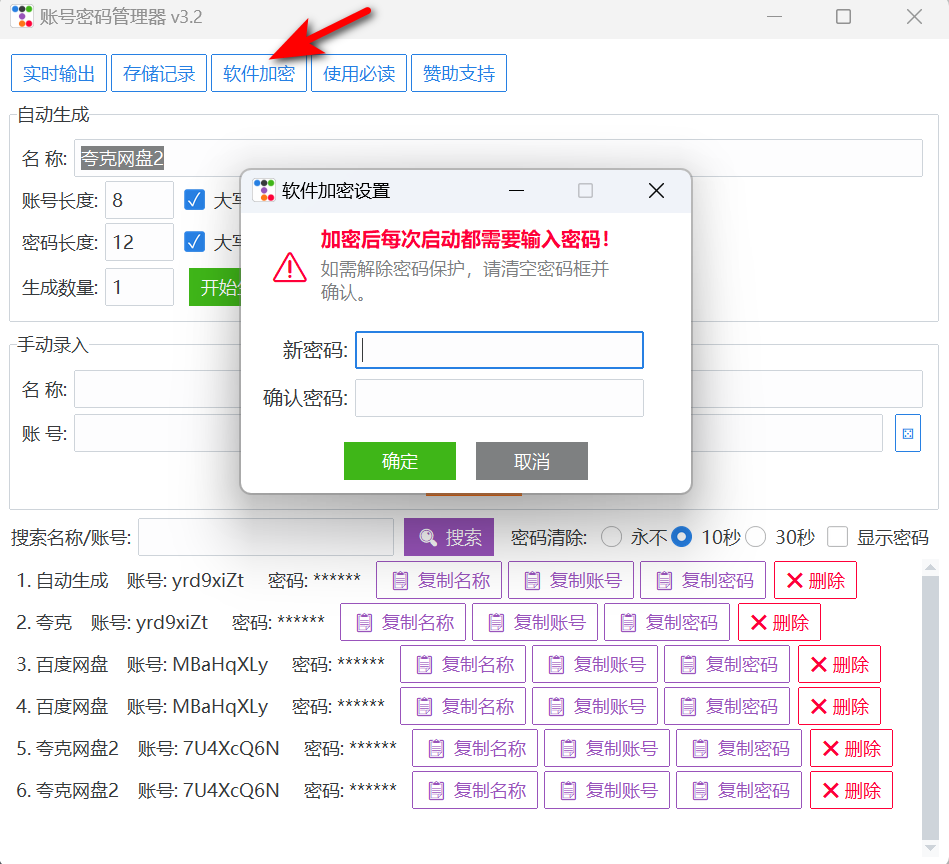 此外,这款软件还可以软件加密,加密后的密码切勿忘记,不然软件就再也无法打开了。