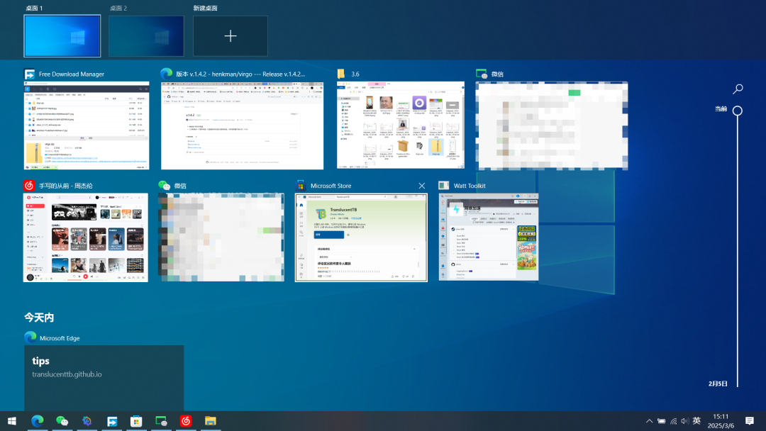微软的初衷其实很好,允许我们将不同用途的应用程序分别放置在不同的桌面中,从而实现工作区的划分。