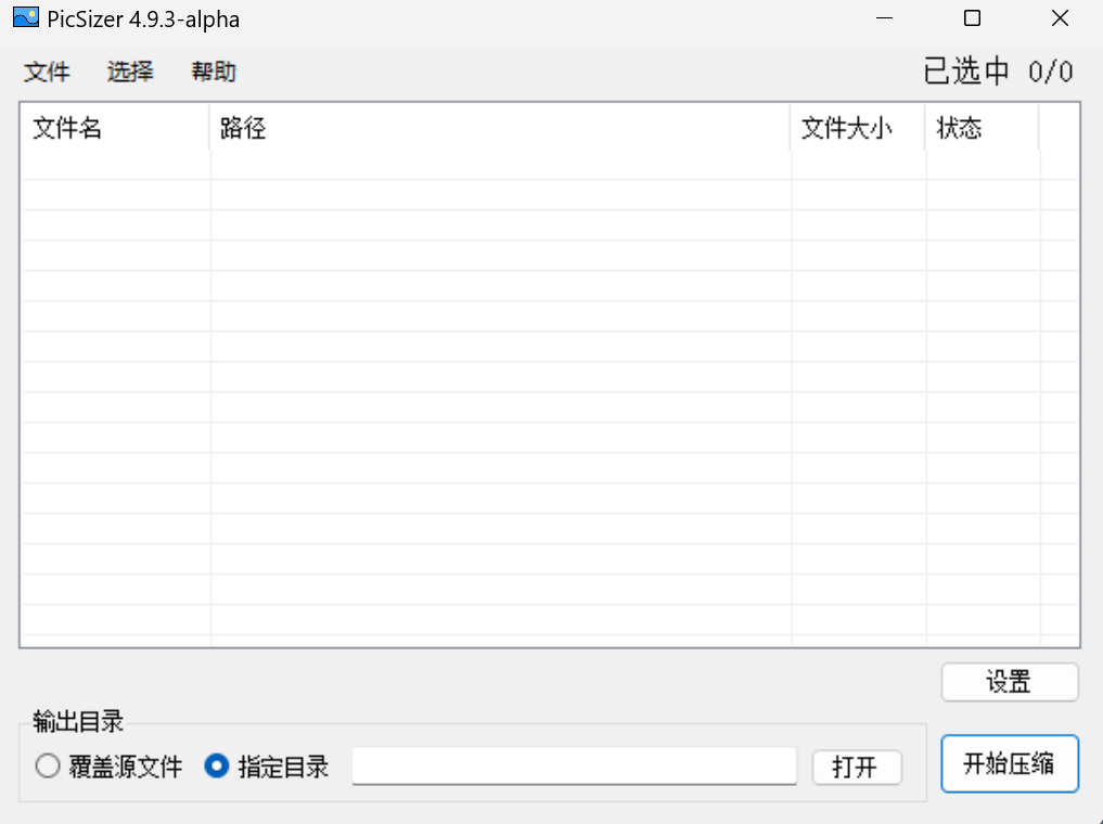 这款软件只有648K的大小,非常小巧的软件,这是一款绿色单文件版,双击即可打开软件,操作方法十分简单:只需将图片拖入软件中,再选择保存目录,点击【开始压缩】即可。