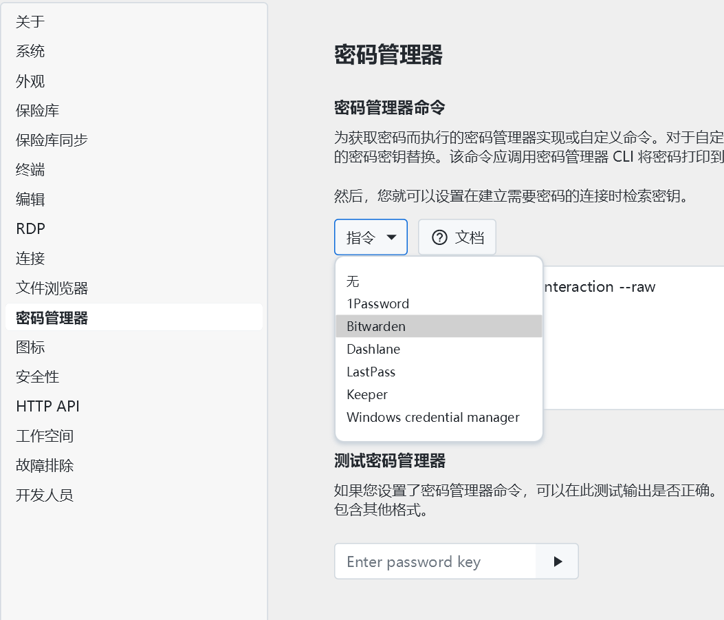 • 密码库对接:兼容Bitwarden等主流密码管理器