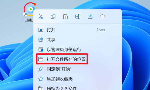 接着,右键点击桌面的软件图标,选择【打开文件所在的位置】,