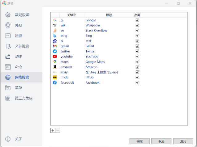 在选项里,能设置的东西非常多,像外观、热键、文件搜索、动作命令等等,完全可以根据自己的习惯进行个性化设置。