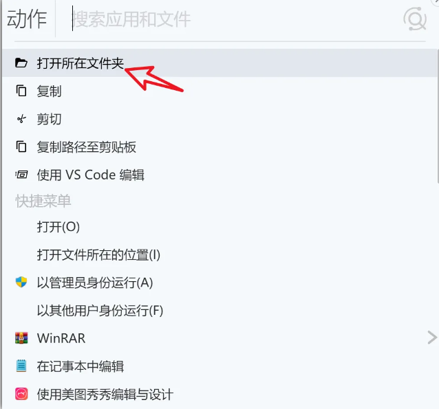 如果想进入软件所在路径,右键选择 “打开所在文件夹” 即可。