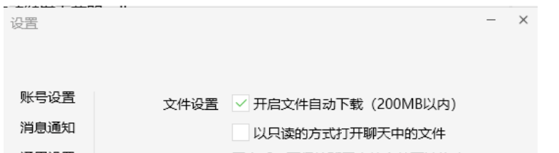 设置目前只给了是否下载的选项,只要勾选就会默认下载所有收到的文件、图片和视频,下载的路径是微信默认保存的路径。如果时间久了,微信占用的磁盘空间会很大,我的号一年的聊天记录已经200G了,主要是加的群比较多。