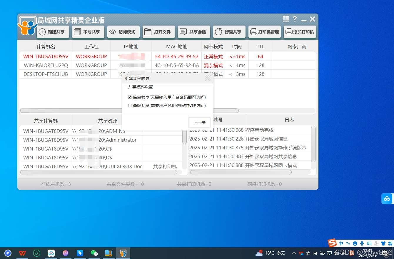 3强大的辅助工具助力于快捷高效的在您的局域网内实现文件共享和打印机共享的操作