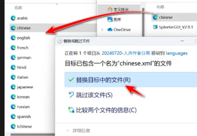 将 `Chinese` 文件复制粘贴到上层的 `languages` 文件夹中,覆盖默认文件。