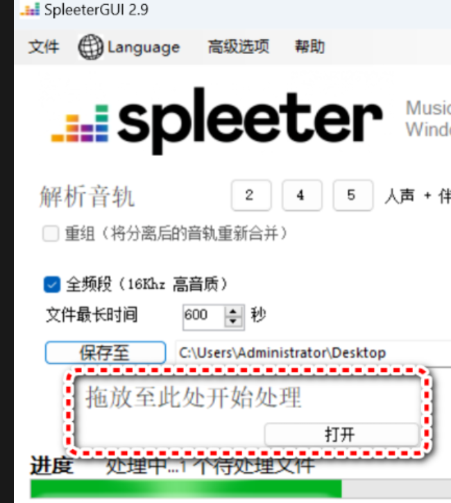 非常简单便捷。打开软件后,在主界面的【解析音轨】选项中选择“2”,表示将音频分离为两个部分(人声和伴奏)。