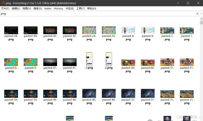 在 "Everything" 这个程序里,你可以通过点击上面的查看菜单,然后选择显示为中等大小的图标、大图标或者非常大的图标。另外,你也可以按住键盘上的 Ctrl 键,同时滚动鼠标的滚轮,这样就可以在详细信息视图和超大图标视图之间来回切换了。