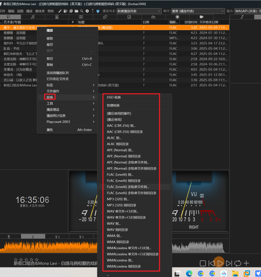 支持格式转换:右键音频,选择“转换”,然后选择需要转换的格式即可转成其他格式的音频。
