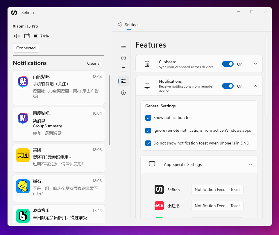近期观察到一个名为Sefirah的开源项目,其试图在Windows与Android之间架设轻量化桥梁。