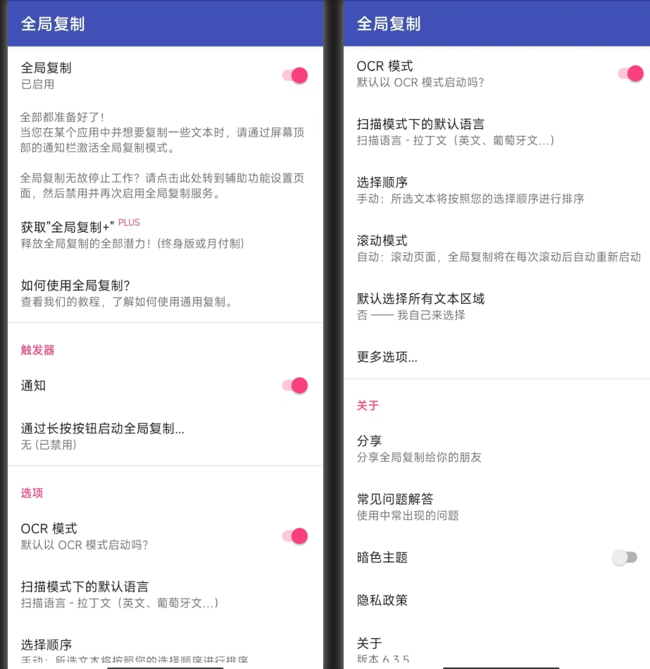 在使用全局复制前,需要先开启无障碍权限。大家只需根据手机的提示进行操作即可。进入软件界面后,记得开启OCR识别模式,这样能进一步提升复制的准确性和便捷性。