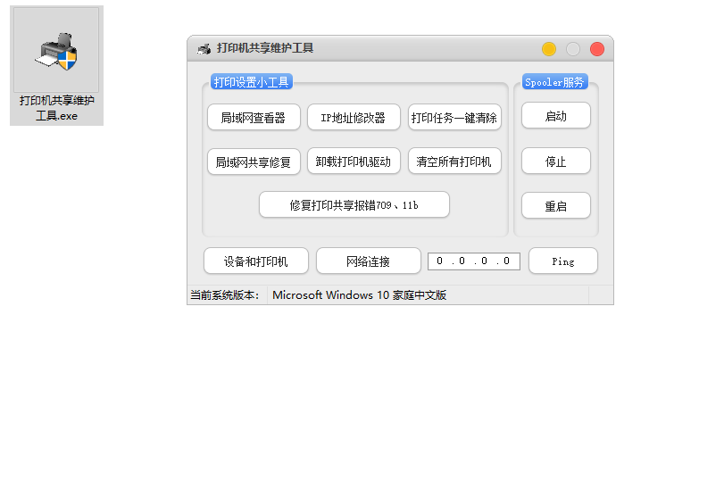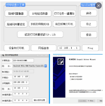 这款软件的核心功能是修复打印机共享时的报错问题,同时还支持修改/监测电脑IP地址、修复局域网共享、卸载打印机驱动等实用功能。