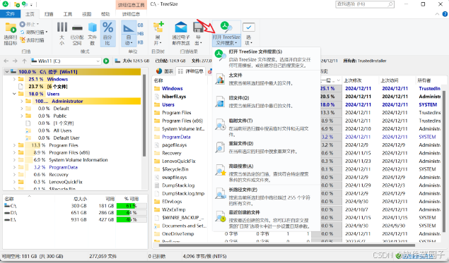 - **文件搜索**:这也是 TreeSize 的核心功能之一。它可以精准查找大文件、旧文件、重复文件以及最近创建的文件。特别是那些年代久远的旧文件,如果确定不是系统文件,那就大胆处理掉,为磁盘空间减负!