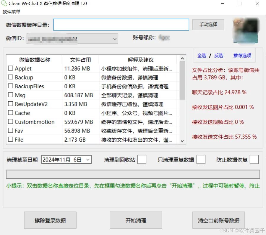 今天给大家推荐一款电脑微信清理工具。它能够快速扫描并找出电脑中微信产生的各类垃圾文件,例如缓存、聊天记录、文件备份、小程序等,帮助你高效管理微信占用的空间。