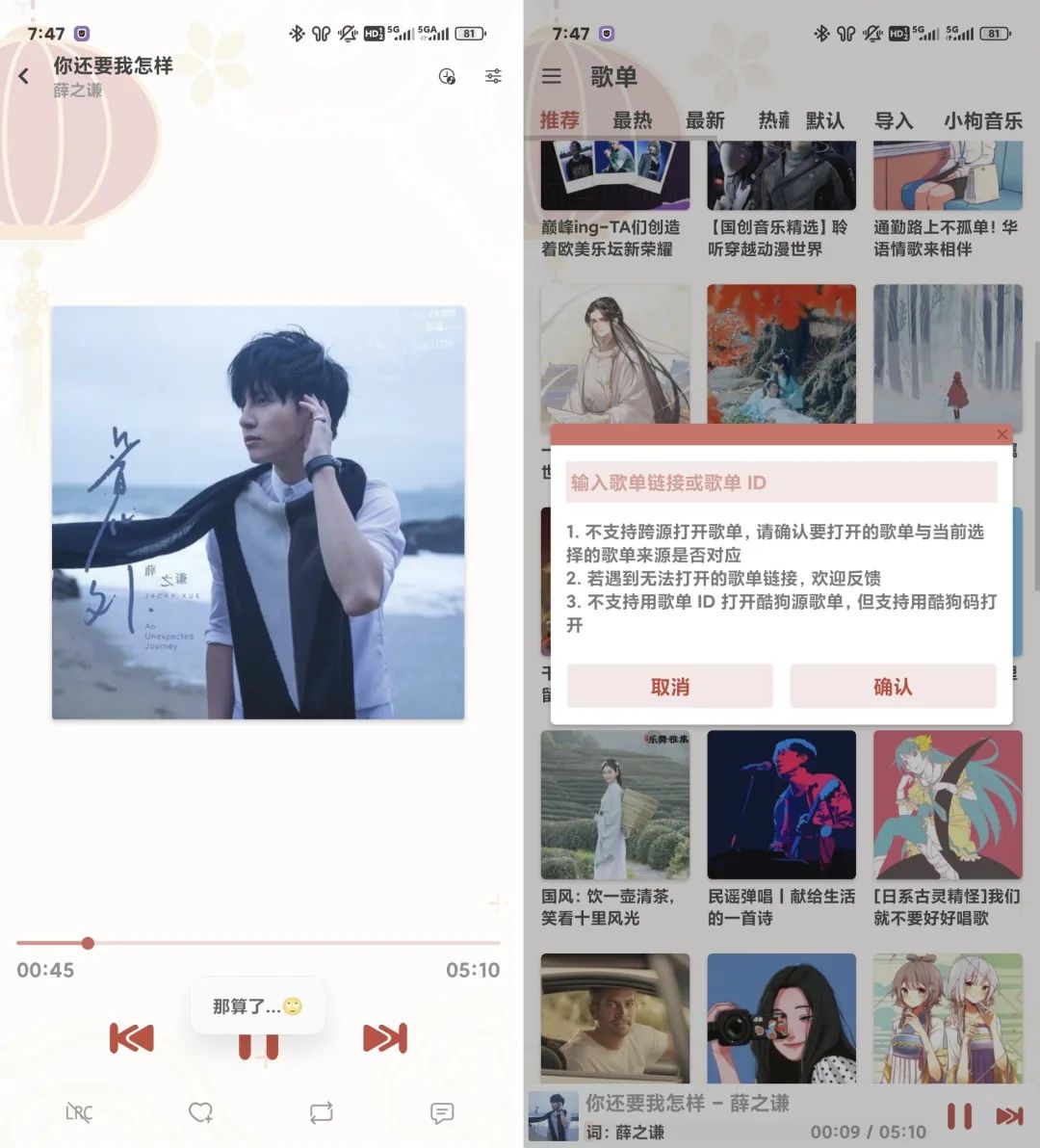 它可以播放各大平台的music资源,无需V1P,就能尽情聆听海量歌曲,真正实现了“一机在手,音乐我有”。而且功能没得说歌单导入等一些用的到的功能软件都有!