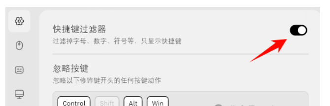 如果觉得显示的键过多,也可以设置只显示快捷键,过滤掉字母、数字等按键