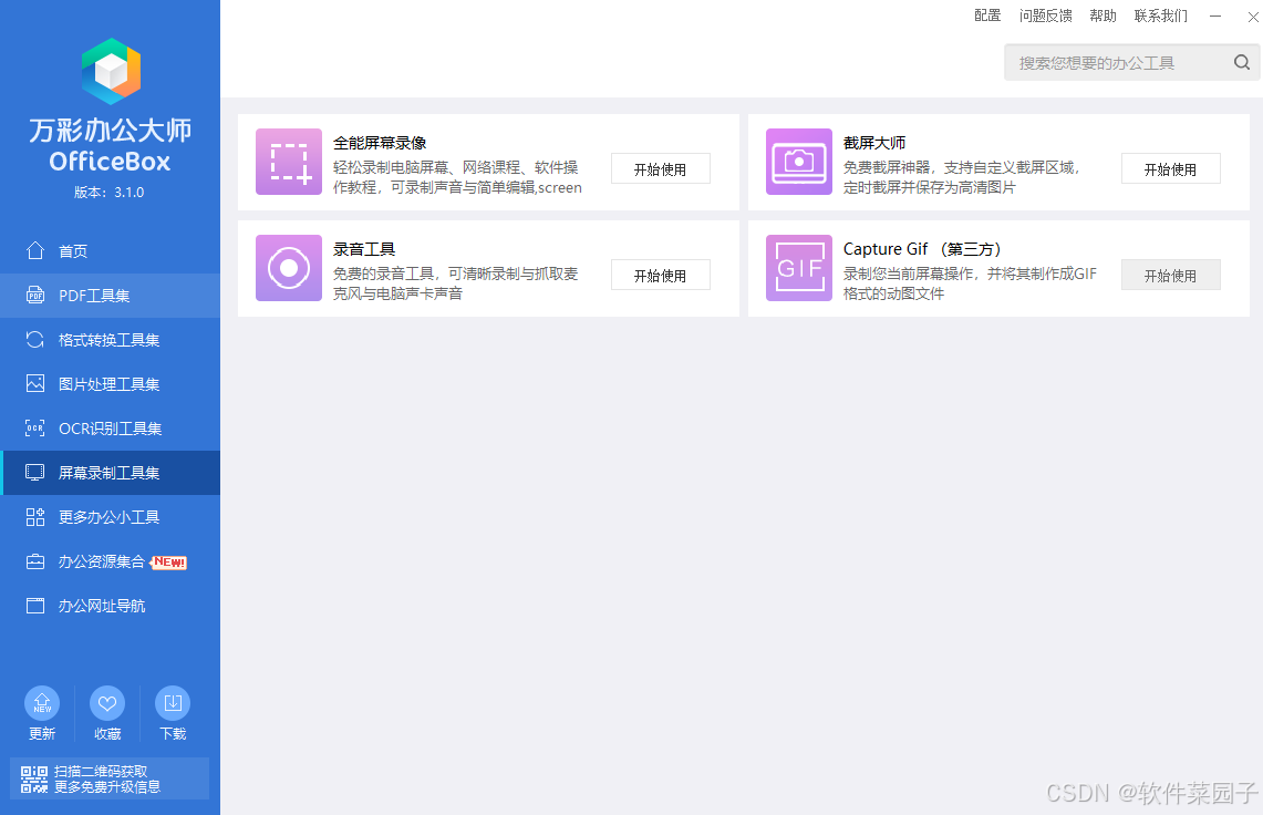 包括录制电脑屏幕、免费截屏神器、免费的录音工具、录制屏幕操作并制作成GIF动图的CaptureGif等。