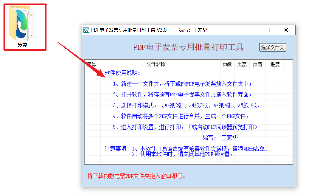 使用这款工具很简单,只需要将所有PDF发票存放在同一个文件夹中,然后将文件夹直接拖到软件中。
