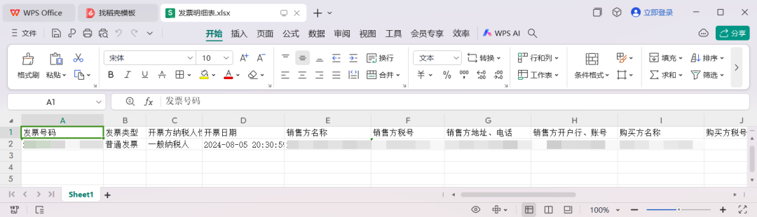 此外,还支持将所有发票批量导出到至EXCEL,方便进一步管理和分析。